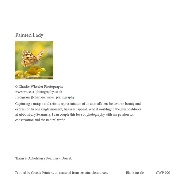 Greeting card measuring 145mm x 145mm (210mm x 145mm unfolded). Blank inside. Watermark removed on printed product. All cards and envelope supplied in recyclable cellophane packaging.